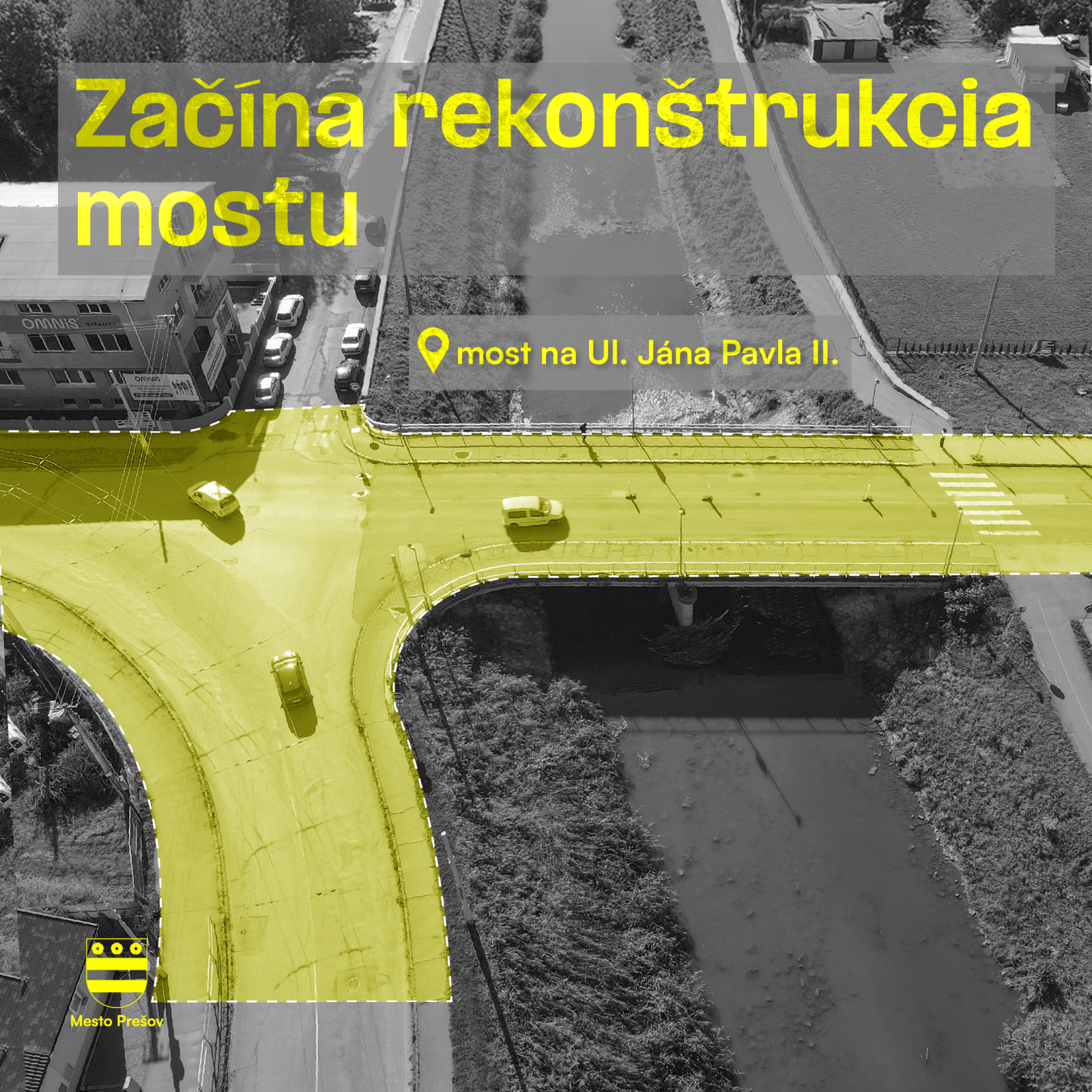 Mesto Prešov pristupuje k jednej z najväčších investícií do svojej dopravnej infraštruktúry za posledné roky. Kompletnej rekonštrukcie sa dočká most na Ulici Jána Pavla II., ktorý spája prešovskú výpadovku s Ulicou 17. novembra a Škultétyho ulicou. Most je aktuálne v havarijnom stave a preto ho nahradí úplne nový mostný objekt. Búracie práce začínajú už v septembri.