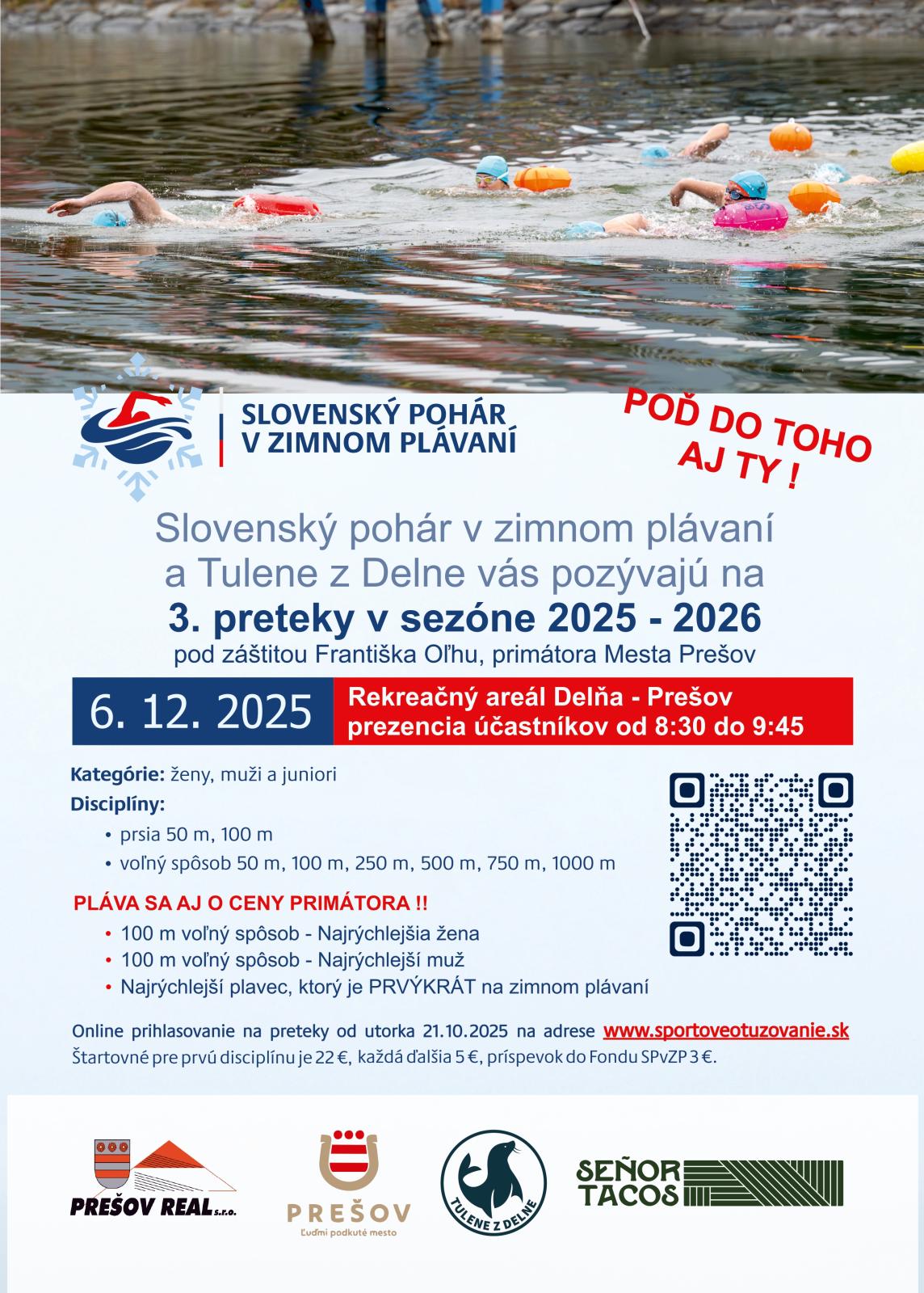 Slovenského pohára v zimnom plávaní sa zúčastní približne stovka plavcov. V Prešove sa tieto špecifické preteky uskutočnia už po tretíkrát. Plavci budú na Delni súťažiť v kategóriách ženy, muži a juniori v disciplínach: