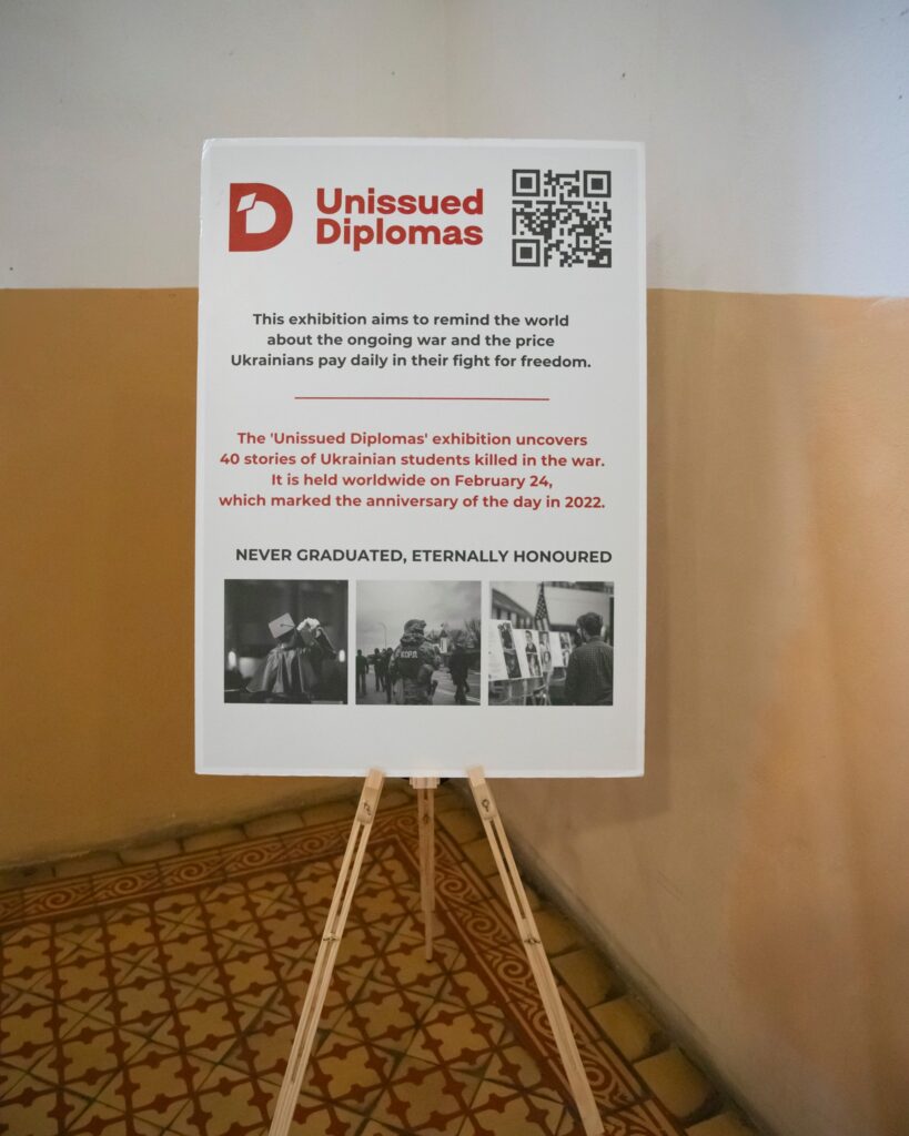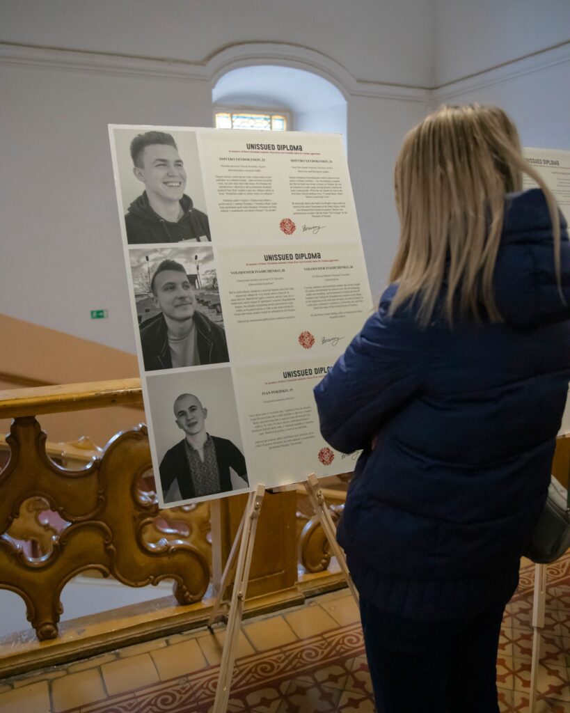Unissued Diplomas je medzinárodný projekt, ktorý pripomína stratené životy ukrajinských študentov. Mnohí z nich usilovne pracovali na tom, aby úspešne ukončili svoje štúdium. Tohto významného okamihu v živote ani ďalších splnených plánov o svojej budúcnosti sa, žiaľ, už nedočkali.