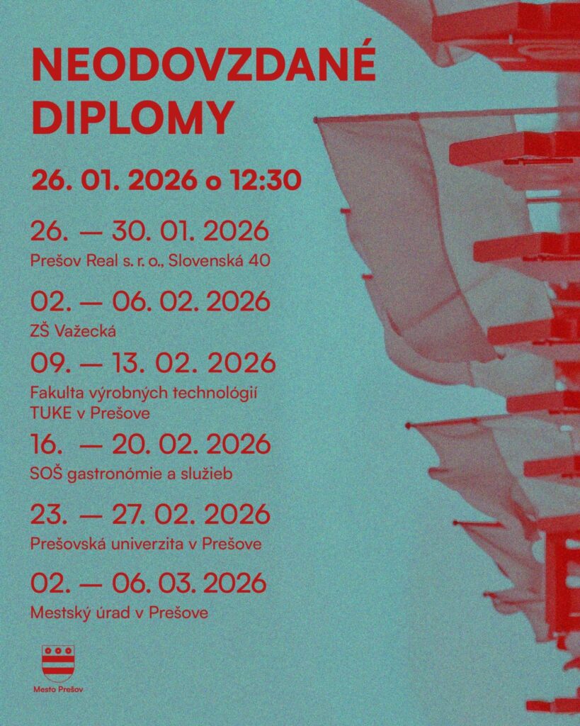 Od pondelka 26. januára 2026 sa v Prešove začne putovná výstava Neodovzdané diplomy (Unissued Diplomas). Mesto Prešov ju pripravuje v spolupráci so Slovenskou humanitnou radou.